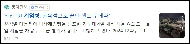 현재 시민들 또한 분노 윤석열 퇴진, 탄핵을 외치며 전국 각지에서 집회가 번져가고 있습니다. 외신 또한 굴욜적 셀프 쿠데타라고 칭하며 그의 대통령직을 정의할 오점이라며 지적, 자유 민주주의 국가라는 한국의 정체성을 크게 배반한 행동이었다고 우려하고 있습니다.