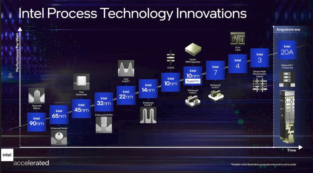 • 인텔: 기존 2nm 노드를 포기하고 18Å(18A) 공정으로 전환, 2027년경 18A 10만 웨이퍼/월 이상을 목표로 함