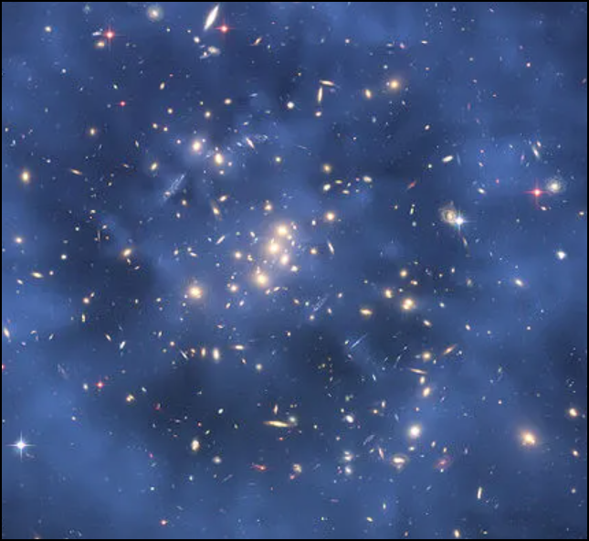 - 이 렌즈 효과를 통해 역산한 질량은 광학적으로 보이는 물질만으로는 설명되지 않으며, 추가 질량이 필요합니다.