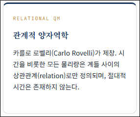 시공간을 불연속적인 양자 구조로 설명 | 시간은 독립적인 절대 변수라기보다 물리량 간의 관계에서 정의 | 시공간 자체가 양자화된 구조로 나타남 |